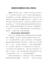 普通党员观看阅兵式的心得体会2025年9月3日,这是一个镌刻在中华民族记忆深处的日子。今天,我有幸在单位的统一组织下,怀着无比崇敬和激动的心情,全程观看了在北京XX广场隆重举行的纪念中国人民抗日战争暨世界反法西斯战争胜利80周年阅兵式。当雄壮的《义勇军进行曲》响彻云霄,当整齐划一的受阅方队以铿锵有力的步伐通过检阅台,当一件件国之重器承载着民族的希望与荣光驶过长安街,一股强烈的民族自豪感和时代责任感在我心中激荡奔涌,久久不能平息。这不仅是一场视听盛宴,更是一堂生动的爱国主义教育课、一曲新时代催人奋进的英雄赞歌。一、钢铁洪流铸国魂,雄狮劲旅展新姿阅兵式上的一幕幕场景,如同壮丽的画卷,深刻烙印在我的...
