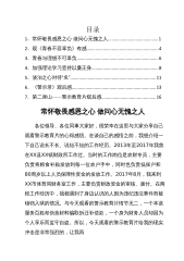 目录1.常怀敬畏感恩之心做问心无愧之人........................................12.观《青春不容辜负》有感.........................................................43.青春与理想不可辜负.................................................................64.加强理论学习坚持以廉正身.....................................................85.淡泊之心对待“名”................