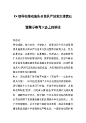 XX领导在推动落实全面从严治党主体责任暨警示教育大会上的讲话