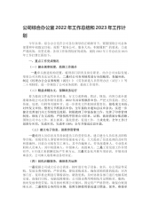 公司综合办公室2022年工作总结和2023年工作计划