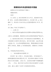 推荐财务年终述职报告可借鉴推荐财务年终述职报告可借鉴1尊敬的领导:您好!本人担任xx财务部经理已有5年多,感谢领导对我的信任,让我得以锻炼和提高自己,财务部门是xx的关键部门,财务的工作涉及到企业经营管理的每个环节,现本人对自己20xx年的工作述职如下:一、主要工作1、制定并贯彻实施酒店财务管理和采购物资管理办法,从根本上查找漏洞,确保财务各岗位的规章制度能严格执行。2、组织财务部全体员工学习酒店财务内控管理制定,将内部控制与内部审计联系起来,每月进行调价、盘点等自查与监督工作,从各项单据票据的审核、票据的填制及印章保管等工作抓起,遵循xx财务报账流程,加强财务工作的规范性,争取酒店利润空间的...