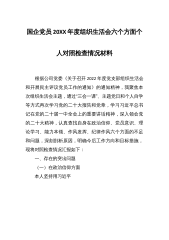 央企党委书记2022年度民主生活会个人发言材料(6628字)上年度生活会整改+学习思想作风建设情况根据集团公司《关于认真开好2022年度党员领导干部民主生活会的通知》和公司党员领导干部民主生活会方案要求,聚焦民主生活会主题,对照党的二十大精神和党章党规党纪,重点从六个方面深入查找自身存在的主要问题深刻剖析原因,认真制定整改措施。现将有关情况报告如下:一、党史学习教育专题民主生活会整改措施落实情况在党史学习教育专题民主生活会上,我共梳理了5个方面15条具体问题,除理论学习等需要长期整改的事项,其余问题均已整改落实完毕。1.针对带头深刻感悟“两个确立”的决定性意义方面存在的3个问题。我坚持带头读原...