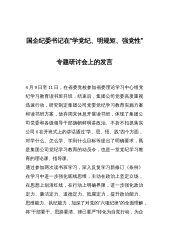 国企纪委书记在“学党纪、明规矩、强党性”专题研讨会上的发言