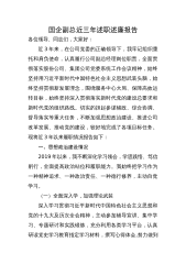 国企副总近三年述职述廉报告各位领导、同志们,大家好:近3年来,在公司党委的正确领导下,我牢记组织重托和肩负使命,认真履行公司副总经理岗位职责,全面贯彻落实股份公司、集团公司党委系统工作会议精神,始终坚持用习近平新时代中国特色社会主义思想武装头脑,始终坚持贯彻新发展理念,围绕服务中心大局、保障高效运转目标,始终坚持深入贯彻落实新时代党的建设总要求和新时代党的组织路线。切实的担起参谋辅政、综合协调、督导落实等重大任务,不断加强思想政治建设、推进公司改革发展、推动党的建设,较好地完成了各项目标任务。现将近3年以来履职情况报告如下:一、思想政治建设情况2019年以来,我不断深化学习领会,学思践悟、笃信...
