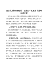 国企党支部经验做法:强基固本筑堡垒 党建领航促发展