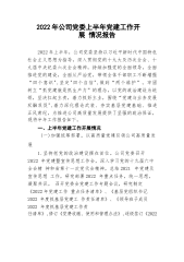 【国资国企】2022年公司党委上半年党建工作开展情况报告