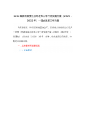 xxxx集团有限责任公司改革三年行动实施方案(2020-2022年)—国企改革三年方案为贯彻落实《中共甘肃省委办公厅、甘肃省人民政府办公厅关于印发〈甘肃省国企改革三年行动实施方案(2020-2022年)〉的通知》(甘办发〔2020〕38号)精神,结合集团公司实际,特制定本实施方案。一、总体要求和首要任务(一)总体要求。以习近平新时代中国特色社会主义思想为指导,全面贯彻落实党的十九大和十九届二中、三中、四中、五中全会精神,增强“四个意识”、坚定“四个自信”、做到“两个维护”,深入学习贯彻习近平新时代中国特色社会主义经济思想及关于国有企业改革发展和党的建设的重要论述,深入贯彻落实习近平总书记对甘肃...