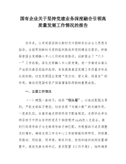 2024年国企党建工作总结及下一步工作计划范文稿【六篇】与2024年学校党委党支部党建工作总结及2025年党建工作计划(5篇)汇编供参考2024年国企党建工作总结及下一步工作计划2024年,公司党委在*领导下,在公司全体党员职工的共同努力下,坚持以习近平新时代中国特色社会主义思想为指导,深入学习贯彻党的二十大精神和中央、省市委决策部署,团结带领基层党支部和广大党员干部职工进一步解放思想、改革创新、锐意进取、勇毅前行,奋力开创高质量党建引领保障公司高质量发展新局面。现将2024年党建工作总结如下:一、2024年党建工作报告(一)铸魂强基,坚持思想引领,提升政治意识。首先,重视政治理论学习,不断坚...