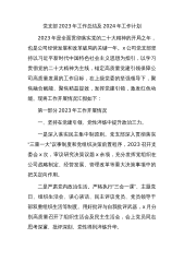 党支部2023年工作总结及2024年工作计划2023年是全面贯彻落实党的二十大精神的开局之年,也是公司经营发展和改革破局的关键一年。x公司党支部坚持以习近平新时代中国特色社会主义思想为指引,以学习贯彻党的二十大精神为主线,锚定高质量党建引领保障公司高质量发展的工作目标,在上级党委的坚强领导下,聚焦融合赋能、聚焦精益提效,发挥党建引领,激发红色动能。现将工作开展情况汇报如下:第一部分2023年工作开展情况一、坚持在党建引领、党性淬炼中提升政治三力。一是深入落实民主集中制原则。党支部深入贯彻落实“三重一大”议事制度和党组织决策前置程序,2023召开支委会x次,审议研究决策议题x余项,充分发挥党组织...