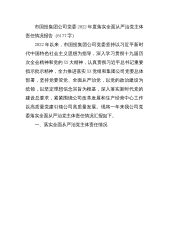 国企党委书记2023年上半年履行全面从严治党主体责任工作情况报告(总结)2023年上半年,在集团党委的坚强领导下,抓好XXX高质量生产,压实“联动责任”,以安全生产为根本,坚持“党建带工建促生产”的基本方向,突出组织政治功能,锤炼人才队伍,强化责任使命担当,凝聚精神文化力量,全面提升管理水平,以高质量全面从严治党的成效引领和确保项目建设高质量推进。现将2023年上半年工作开展情况报告如下:一、2023年上半年工作推进情况及主要做法(一)始终坚持以政治建设为统领,落实落细从严治党主体责任。一是坚持压实党建主体责任。严格落实公司党委议事规则“三重一大”决策机制,累计召开XX会XX次,研究审议事项X...