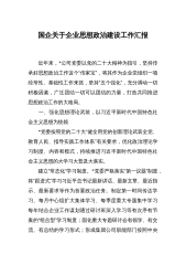 公司领导在2023年国企思想政治建设工作推进会上的汇报发言各位领导,同志们:习近平总书记在全国国有企业党的建设工作会议上强调:“要把思想政治工作作为企业党组织一项经常性、基础性工作来抓。”****能源有限公司(以下简称“****公司”)党委在积极响应国家“双碳”目标、全面推进企业转型升级的过程中,认真学习贯彻落实习近平总书记关于思想政治工作的重要论述和重要指示批示精神,不断加强改进思想政治工作,为企业生产经营、改革发展注入了强劲的精神动力。一、强化思想引领,提升政治站位落实第一议题,把准政治方向。坚持思想建党、理论强党,始终是党保持统一思想、统一意志、统一行动的根本保证。****公司始终将党的...