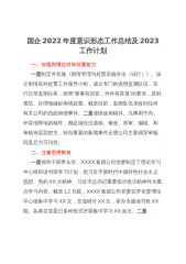 国企党委关于2023年上半年意识形态工作总结及下半年工作计划一、意识形态工作开展情况一是加强组织领导,健全工作机制。公司党委认真贯彻落实上级党委关于意识形态工作部署要求,将意识形态工作摆在重要位置,成立了意识形态工作领导小组,公司党委书记任组长,其他党委委员任副组长,各部门、场站负责人任小组成员。领导小组下设办公室,设有主任、副主任和办公室成员,主要负责落实中央和上级党组织关于意识形态工作的决策部署和指示精神,指导公司开展意识形态相关工作,做到意识形态工作与生产经营同谋划、同部署、同实施。二是强化责任落实,严把政治方向。把意识形态工作作为公司党的建设的重要内容,纳入重要议事议程,与经营管理和党...