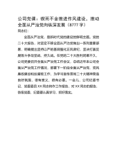 XX国企党委书记2023年党委工作报告(8000字)勇毅前行创标杆接续奋斗谱新篇——XXX公司党委工作报告2022年,以XXX总书记新时代中国特色社会主义思想为指导,深入学习贯彻党的XX大精神,认真落实集团公司工作会部署、党风廉政建设和反腐败工作会议安排,聚焦公司第三次党代会工作谋划和打造双标杆企业目标,不忘初心、勇毅前行,苦干实干、接续奋斗,奋力夺取上产XXX亿新会战新胜利,不断开创高质量发展新局面。一、2022年工作回顾一年来,公司党委在全面推进各项工作的同时,重点抓了五件大事。一是扎实组织开展主题教育。把开展主题教育作为重大政治任务,高站位谋划、高标准开展,通过升级打造毛主席视察隆昌气矿...