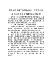国企加强党建工作经验做法:压实责任链条+持续推进基层党建工作走深走实