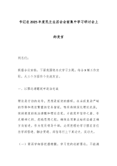 市纪委书记在市纪委监委理论学习中心组民主生活会专题学习研讨会上的讲话同志们:今天,我们召开市纪委监委理论学习中心组2026年第一次集体学习会,主要目的是深入学习领会习近平总书记关于党的建设的重要思想、关于党的自我革命的重要思想以及关于加强党的纪律建设和作风建设的重要论述,为接下来高标准、高质量开好民主生活会打牢坚实的思想基础。刚才,会议组织学习了相关重要精神,**等同志围绕学习主题作了很好的交流发言,大家结合工作实际,谈认识、谈体会、谈打算,学习研讨很有深度,达到了预期效果。民主生活会是党内政治生活的重要内容,是发扬党内民主、加强党内监督、依靠领导班子自身力量解决矛盾和问题的重要方式。作为纪检...