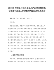 在2025年度县科技局全面从严治党形势分析会暨意态工作分析研判会上的汇报发言