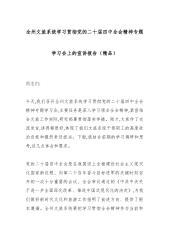 全州文旅系统学习贯彻党的二十届四中全会精神专题学习会上的宣讲报告(精品)同志们:今天,我们召开全州文旅系统学习贯彻党的二十届四中全会精神专题学习会,主要任务是深入学习领会全会精神,紧密结合文旅工作实际,研究部署贯彻落实举措。刚才,大家作了交流发言,讲得都很好,体现了我们文旅系统干部职工的高度政治自觉和强烈责任担当。下面,我结合前期的学习调研和思考,谈几点体会和要求。党的二十届四中全会是在我国迈上全面建设社会主义现代化国家新征程、向第二个百年奋斗目标进军的关键时刻召开的一次十分重要的会议。全会审议通过的《中共中央关于进一步全面深化改革、推进中国式现代化的决定》,为我们做好新时代文化和旅游工作指明...