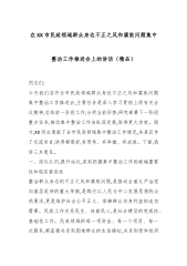 在XX市民政领域群众身边不正之风和腐败问题集中整治工作推进会上的讲话(精品)同志们:今天我们召开全市民政领域群众身边不正之风和腐败问题集中整治工作推进会,主要任务是深入学习贯彻上级有关会议精神,总结前一阶段工作,分析当前形势,研究部署下一阶段重点任务,推动集中整治工作向纵深发展,取得更大实效。刚才,XX同志通报了全市民政领域集中整治工作情况,各县区作了交流发言,讲得都很好,有思考、有举措、有成效。下面,我讲三点意见。一、深化认识,提升站位,深刻把握集中整治工作的极端重要性和现实紧迫性整治群众身边的不正之风和腐败问题,是推动全面从严治党向基层延伸的重大举措,是践行以人民为中心发展思想的必然要求,...