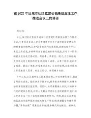在2025年区城市社区党建引领基层治理工作推进会议上的讲话