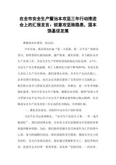 在全市安全生产暨治本攻坚三年行动推进会上的汇报发言:锐意攻坚除隐患,固本强基促发展尊敬的各位领导,同志们:今年以来,我县坚决扛起“促一方发展、保一方平安”的政治责任,始终坚持以最高标准、最严要求、最实举措,全力抓好安全生产各项工作,全县安全生产形势持续保持稳定向好态势。1-*月,全县生产安全事故起数、死亡人数同比分别下降*%和*%,未发生较大及以上生产安全事故。我们深刻认识到,安全生产永远在路上,治本攻坚任重道远。此次会议为我们提供了宝贵的学习交流机会,我们将认真学习借鉴兄弟区县的好经验、好做法,进一步补齐短板、强化弱项,坚决守住安全生产底线。根据会议安排,现将*县深入学习贯彻习近平总书记关于...