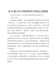 在XX县2025年秋季开学工作会议上的讲话同志们,各位校长、各位园长,教育战线的全体同仁们:大家上午好!金秋送爽,丹桂飘香。在这个满载希望与收获的季节,我们迎来了新的学年。今天,我们齐聚一堂,召开全县2025年秋季开学工作会议,主要任务是全面总结过去一学年的工作成绩,深入分析当前教育发展面临的新形势新任务,安排部署新学期的各项重点工作,进一步统一思想、凝聚共识、明确目标、鼓舞干劲,奋力谱写XX县教育事业高质量发展的新篇章。刚才,会议表彰了一批先进集体和优秀个人,几位校长代表作了很好的述职和交流发言,内容详实、重点突出,体现了大家对教育事业的深刻思考和责任担当。在此,我代表XX县委、县政府,向受...