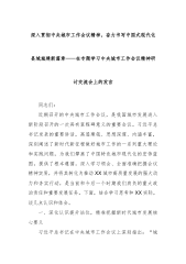 深入贯彻中央城市工作会议精神,奋力书写中国式现代化县域城建新篇章——在专题学习中央城市工作会议精神研讨交流会上的发言同志们:近期召开的中央城市工作会议,是我国城市发展进入新阶段召开的一次具有里程碑意义的重要会议。习近平总书记发表的重要讲话,高屋建瓴、思想深邃、内涵丰富,深刻阐述了新时代新征程做好城市工作的一系列重大理论和实践问题,为我们擘画了中国特色城市现代化的宏伟蓝图,提供了根本遵循。深入学习领会、全面准确把握会议精神实质,并将其转化为推动XX城市高质量发展的强大动力和务实行动,是当前和今后一个时期我们肩负的重大政治责任和重要发展任务。下面,结合学习思考和XX实际,谈几点认识和体会。一、深化...