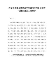 在全市住建系统学习中央城市工作会议精神专题研讨会上的发言同志们:刚刚胜利闭幕的中央城市工作会议,是在我国城市发展进入新阶段的关键时期召开的一次具有里程碑意义的重要会议。总书记出席会议并发表重要讲话,系统总结成就,深刻分析形势,明确总体要求、重要原则与重点任务,为新时代新征程做好城市工作提供了根本遵循和行动指南。深入学习领会、坚决贯彻落实会议精神,是我们当前的后一个时期的首要政治任务和重大工作责任。作为城市建设的直接参与者和城市管理的具体执行者,全市住建系统必须深刻认识这次会议的重大意义,准确把握核心要义与实践要求,切实将思想和行动统一到党中央决策部署上来,肩负起推动城市高质量发展的时代使命。下...