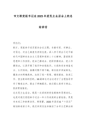 XX镇2025年度民主生活会班子对照检查材料(带案例)根据上级党委关于召开2025年度民主生活会的统一部署,XX镇党委领导班子紧扣会议主题,以高度的政治自觉和严肃的政治态度,扎实做好各项准备工作。会前,班子成员通过党委理论学习中心组集中学习、个人自学等方式,深入研读了党的二十届三中、四中全会精神及习近平总书记系列重要讲话。班子成员之间、班子成员与分管部门负责同志、与所在支部党员代表之间深入开展了谈心谈话,累计谈话40余人次。同时,通过发放征求意见表、召开座谈会、设置意见箱等多种渠道,广泛征集到来自各方面的意见建议共计35条。在此基础上,班子成员认真撰写个人发言提纲,并形成了本班子对照检查材料。...