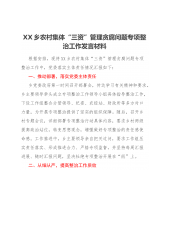 XX乡农村集体“三资”管理贪腐问题专项整治工作发言材料