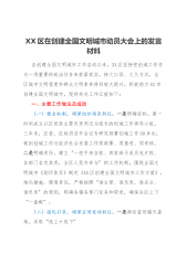 XX市场监管局在2023年迎检全国创文检查工作会议上的表态发言