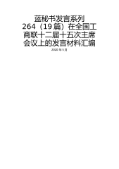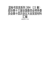 蓝秘书发言系列384(15篇)政协第十三届全国委员会常务委员会第十四次会议大会发言材料汇编2020年11月目录1.全国政协常委谢伏瞻:加快构建新发展格局12.全国政协常委夏涛(代表民革中央):推动长三角更高水平协同开放23.全国政协常委王光谦(代表民盟中央):提高高等工程教育质量34.全国政协常委孙东生(代表民建中央):数字化赋能城市治理现代化45.全国政协常委张帆(代表民进中央):实现文化产业高质量发展56.全国政协常委于文明(代表农工D中Y):促进共享发展建设健康中国67.全国政协常委张恩迪(代表致公D中Y):加强科技创新与国际合作78.全国政协常委洪捷序(代表九三学社中央):建设高质量现...