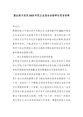 国企班子成员2025年民主生活会会前研讨发言材料同志们:根据安排,今天我们召开专题会议,为高质量开好2025年度民主生活会进行会前集中学习和思想动员。通过再次深入学习领会习近平总书记系列重要讲话和指示批示精神,我深受教育和启发。下面,我结合个人思想和工作实际,谈几点初步的学习体会和感悟,以便在后续的对照检查和相互批评中,能够更精准地查摆问题。一、深化思想理论武装筑牢自我革命根基思想是行动的先导,理论是实践的指南。通过系统学习,我深刻认识到,只有不断用党的创新理论武装头脑,才能在纷繁复杂的形势面前保持清醒,在艰巨繁重的任务面前保持定力。一是深刻领悟自我革命的重大意义。习近平总书记在《求是》杂志发...
