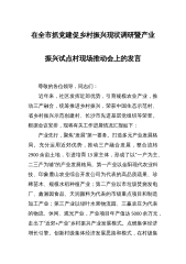 在全市抓党建促乡村振兴现状调研暨产业振兴试点村现场推动会上的发言