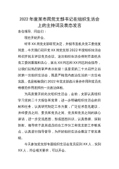 2022年度某市局党支部书记在组织生活会上的主持词及表态发言