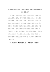 在乡村振兴工作会议上的交流发言:坚持以文旅融合推动乡村全面振兴近年来,乡党委始终坚持以习近平新时代中国特色社会主义思想为指导,深入贯彻落实党的二十大和二十届二中全会精神,全面贯彻中央农村工作会议和中央一号文件精神,积极落实省委、市委抓基层党建促乡村振兴重要工作要求,把党建引领村集体经济发展作为基层党建工作重要任务来抓,锚定聚焦党建引领特色生态旅游发展目标,不断深化“党建+”发展模式,充分利用资源禀赋、区域特色和文化底蕴,大力推动文化、旅游、畜牧业等相结合,努力打造草原生态文化旅游目的地,大力推进村集体经济“强村工程”。一、强化队伍建设新能力,注入乡村振兴“新活水”。随着乡村旅游发展形势,乡审势...