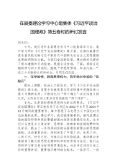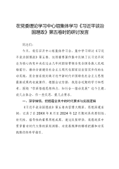市委中心组学习《习近平经济文选》研讨发言 大家好。根据会议安排,我就学习《习近平经济文选》第一卷作个研讨发言。这次学习对我而言,是一次深刻的理论滋养和思想洗礼。文选中的一系列重要文稿,系统记录了新时代我国经济社会发展的壮阔历程和辉煌成就,更蕴含着指导我们未来发展的科学方法论。我的认识还很初步,借此机会,结合个人的一些思考,谈三点不成熟的心得体会,主要是向各位领导和同志们汇报学习过程中的一些感悟和反思,希望能得到大家的批评指正。一、在深学细悟中,校准高质量发展的“政绩观”过去很长一段时间,一谈到发展,我的第一反应可能还是速度、规模和总量。但通过反复研读《习近平经济文选》,我深刻体会到,习近平总书...