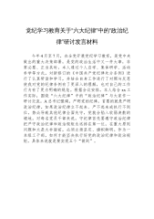 党纪学习教育关于“六大纪律”中的“政治纪律”研讨发言材料六项纪律