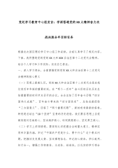 在全区贯彻落实“第一议题”制度推进会上的汇报发言尊敬的各位领导,同志们:近年来,区政协以习近平新时代中国特色社会主义思想为指导,把学习宣传贯彻党的XX大精神和习近平总书记重要讲话重要指示批示精神列为中心组学习等重要会议“第一议题”,制定学习计划,坚持读原著学原文、悟原理知原义,将科学理论转化为指导实践、推动政协工作的强大动力。建章立制,打造政治坚定干部队伍。区政协大兴学习之风,深入推进“第一议题”制度在政协落地生根。自“第一议题”制度启动以来,区政协第一时间将贯彻落实习近平总书记重要讲话重要指示精神的固定动作转变为一项明确的制度,并及时制定出台了《××区政协“第一议题”制度实施方案》,让“小规...