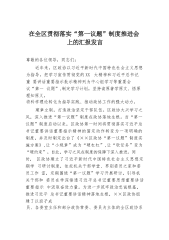 在全区贯彻落实“第一议题”制度推进会上的汇报发言.docx