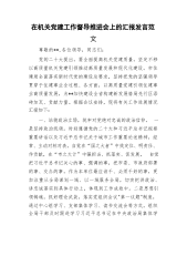 在机关党建工作督导推进会上的汇报发言范文尊敬的**,各位领导,同志们:党的二十大提出,要全面提高机关党建质量,坚定不移以高质量机关党建引领推动高质量发展和现代化建设。市住建局全面落实新时代党的建设总要求,坚持把党的坚强领导贯穿于住建事业全过程、各方面,以高质量党建引领住建事业高质量发展,为**加快建设全省构建新发展格局先行区添砖加瓦、贡献力量。根据会议安排,现将有关工作进展情况汇报如下:一、站稳政治立场,筑牢对党绝对忠诚的政治信仰。一是坚持政治统领。时刻遵循党的二十大和习近平总书记视察重要讲话以及习近平总书记关于城市工作重要论述精神,经常、主动对标对表,自觉在“国之大者”中找定位、明责任、作贡...