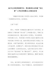 XX县公安局党委书记、局长在县委第四巡察组对县公安局党委开展巡察“回头看”动员会上的表态发言 尊敬的县委第四巡察组各位领导,同志们: 根据县委的统一部署,县委第四巡察组正式进驻我局开展为期50天的巡察“回头看”工作。今天,我们在这里召开动员会,这标志着本次巡察“回头看”工作的全面启动。首先,我代表县公安局党委和全体公安民警、辅警,对县委第四巡察组各位领导的到来,表示最热烈的欢迎和最诚挚的敬意!对县委、县纪委、县委巡察办长期以来对公安工作的关心、指导和支持,表示衷心的感谢! 刚才,巡察组组长XX同志作了深刻而有力的动员讲话,深刻阐述了开展巡察“回头看”工作的重大意义,明确指出了本次巡察...