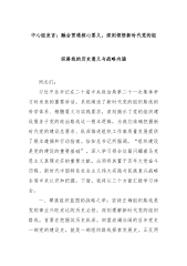 在学习贯彻总书记中央政治局第二十一次集体学习重要讲话精神专题研讨会上的发言:深学细悟笃行新时代组织路线,为经济社会高质量发展提供坚强组织保证同志们:这次中央政治局集体学习,聚焦“深入学习领会和贯彻落实新时代党的组织路线”,习近平总书记发表的重要讲话高屋建瓴、内涵深邃,是指导新时代党的组织建设的纲领性文献。深入学习领会这一重要讲话精神,对于我们深刻认识党的组织路线的重大意义、科学内涵和实践要求,切实把党建设得更加坚强有力,具有极其重要的现实意义和深远的历史意义。作为市委领导,必须带头学深悟透、融会贯通,坚决扛起抓党的组织建设的主体责任,带领全市党员干部切实把思想和行动统一到总书记重要讲话精神上来...