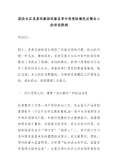 副县长在县委巡察组巡察县审计局党组情况反馈会上的讲话提纲同志们:刚才,县委巡察组组长通报了巡察发现的问题,指出的问题一针见血、精准深刻;县委巡察办主任对如何抓好巡察整改工作提出了明确、具体的要求;县审计局党组书记也作了很好的表态发言。希望县审计局党组要高度重视、端正态度,全力抓好问题整改。为确保巡察整改工作落地见效,借此机会,我再强调三点意见。一、深化思想认识,增强“坚决整改”的政治自觉巡察整改工作是一项严肃的政治工作,是全面从严治党的重要抓手(习近平总书记高度重视,每一轮中央巡视都亲自听取巡视情况汇报,并就巡视整改作出重要指示。他强调如果巡视不整改,巡视就没有作用,而且会有负作用,巡视制度就...