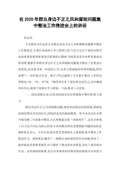 在2025年群众身边不正之风和腐败问题集中整治工作推进会上的讲话