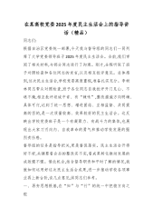在某高校党委2025年度民主生活会上的指导讲话(精品)