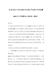 在XX区红十字会2025年全面从严治党工作总结暨2026年工作部署会上的讲话(精品)同志们:今天,我们在这里召开区红十字会2025年全面从严治党工作总结暨2026年工作部署会,主要任务是深入学习贯彻党的最新精神和上级关于全面从严治党的决策部署,回顾总结过去一年的工作,分析研判当前形势,安排部署新一年的任务。刚才,XX同志全面总结了我会在2025年的工作,实事求是、内容详实;派驻纪检监察组XX同志也对我们提出了明确、中肯的要求,具有很强的指导性和针对性,我们必须深刻领会、坚决落实。下面,结合大家的发言和我的思考,我再讲三点意见。一、回顾2025年:在全面从严治党引领下,我区红十字事业取得新成效2...