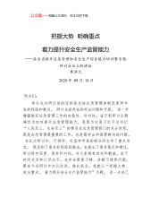 公文堂——海量公文资料,关注立即下载把握大势明确重点着力提升安全生产监管能力——在全省提升应急管理和安全生产综合能力培训暨专题研讨会议上的讲话黄泽元2020年09月18日同志们:举办这次研讨班的目的是总结应急管理体制改革两年来的经验和教训,研讨当前存在的突出问题和矛盾,进一步增强做好应急管理工作的自觉性、针对性。省厅把研讨主题确定为如何提升应急管理能力,是因为这是习近平总书记“人民至上、生命至上”的要求在应急管理部门的充分体现,既是应急管理最重要的工作,也是最突出和亟需解决的问题。在此次研讨中,厅领导、处室和市县的部分同志作了重点发言,既谈到了很多好经验好做法,也提出了很多意见和建议,研讨很有...