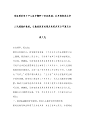 党组理论学习中心组专题研讨发言提纲:以更高标准办好人民满意的教育,让教育改革发展成果更多更公平惠及全体人民各位领导、同志们:教育兴则国家兴,教育强则国家强。习近平总书记在全国教育大会上强调,要坚持以人民为中心,不断提升教育公共服务的普惠性、可及性、便捷性,让教育改革发展成果更多更公平惠及全体人民。习近平总书记的重要讲话充分体现了以人民为中心、办好人民满意的教育的价值追求,为我们深入促进教育公平指明了方向。人民群众“有学上”的需求得到满足后,“上好学”成为当前教育突出的矛盾和问题。教育部门要坚持以人民为中心,优化区域教育资源配置,推动义务教育优质均衡发展,不断提升教育公共服务的普惠性、可及性、便...