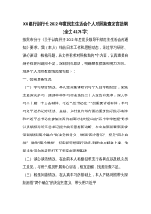 XX银行副行长2022年度民主生活会个人对照检查发言提纲(全文4173字)按照市分行《关于认真开好2022年度党员领导干部民主生活会的通知》要求,我(本人)结合日常工作和思想动态,通过学习研讨、谈心谈话、检视问题,从文件要求对照检查的*个方面,认真查摆自身存在的问题和不足,深刻剖析原因,明确整改措施和努力方向。现将个人对照检查情况报告如下:一、会前准备情况(一)学习研讨情况。本人坚持集体研讨与个人自学相结合,聚焦主题深化学习,原原本本学习研读党的二十大报告和党章,深入学习二十届一中全会精神、习近平总书记在***的重要讲话精神,学习习近平总书记对经济、金融、乡村振兴等方面的重要指示批示精神和习近...