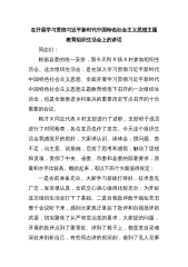 在开展学习贯彻习近平新时代中国特色社会主义思想主题教育组织生活会上的讲话同志们:根据县委的统一安排,我今天到X镇X村参加组织生活会。这次组织生活会,是在深入学习贯彻习近平新时代中国特色社会主义思想、全面开展学习贯彻习近平新时代中国特色社会主义思想主题教育情形下召开的一次组织生活会,也是全面推进乡村振兴的重要历史节点召开的十分重要的会议。刚才X同志代表X村支部进行了述职,支部班子成员进行了对照检查,各位党员也作了发言。今天这个组织生活会我感觉开的很好,大家讲认识、谈体会,摆问题、查不足,出主意、说措施,启发了思考和感悟,触动了思想和灵魂,贯彻了中央、省委、市委和县委的部署要求,质量和水平比较高。...